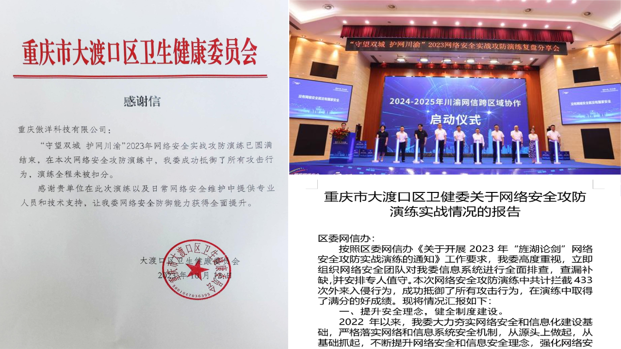 2023年“守望双城、护网川渝”暨2024年“川渝滇黔桂”网络安全实战攻防演练均获满分